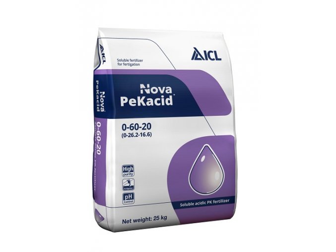 PeKacid - 0-60-20 čistí závlahové systémy a snižuje pH postřiku a fertigace do optimální hodnoty.